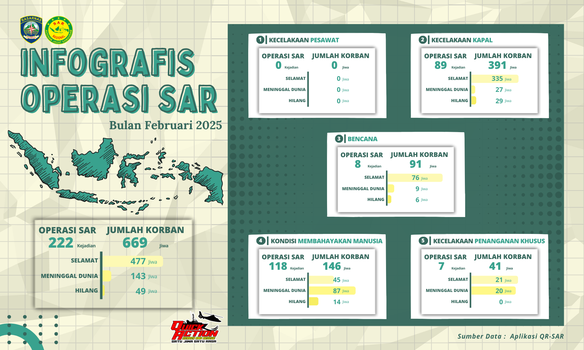 Infografis Operasi SAR Basarnas Bulan Maret 2025
